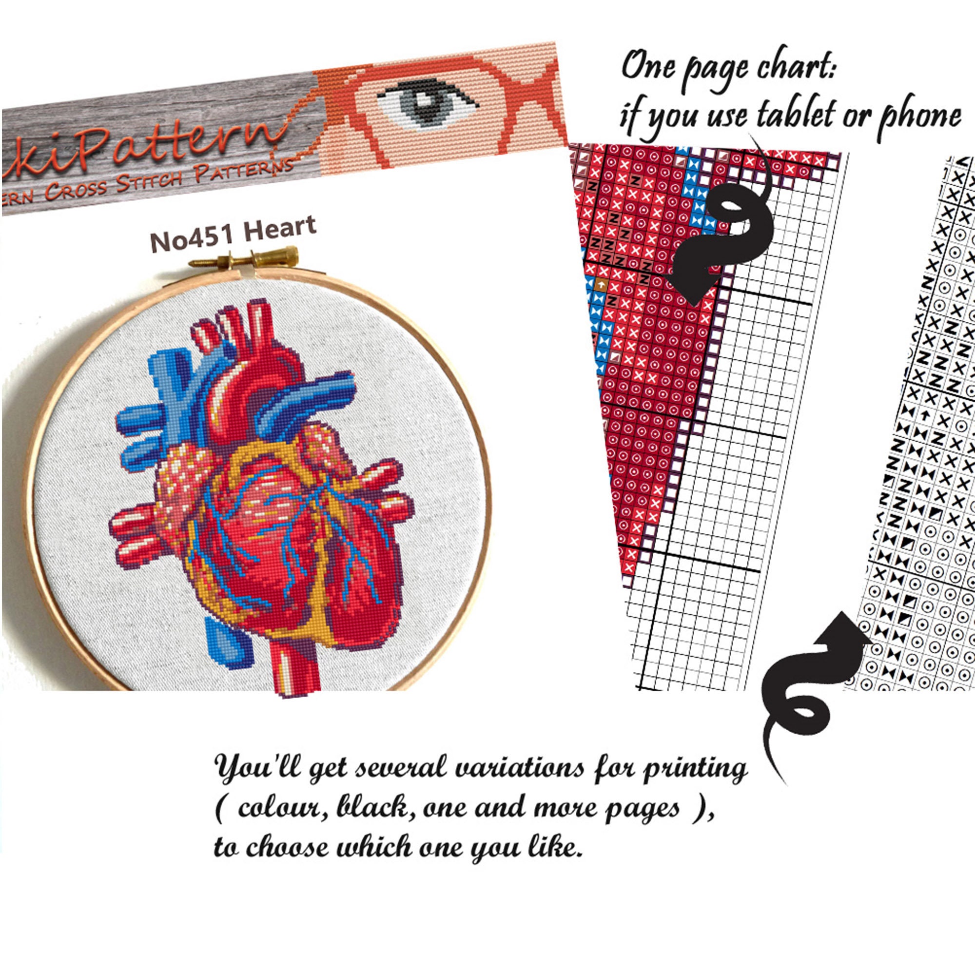 Anatomical Heart Cross Stitch Pattern Human Heart Embroidery Etsy